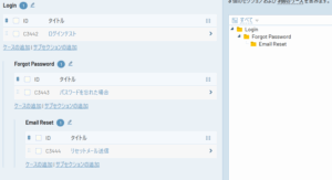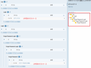 2件目のテストケースは、Login の下に Forgot Password というサブセクション (2階層目) を作成、使用します。