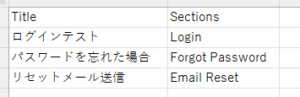 - セクション:テストケースを配置するセクションの名前、階層を定義します。
