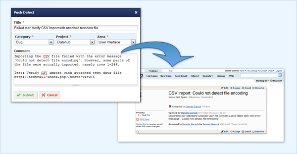 Using the defect plugin for FogBugzto push and look up FogBugz cases