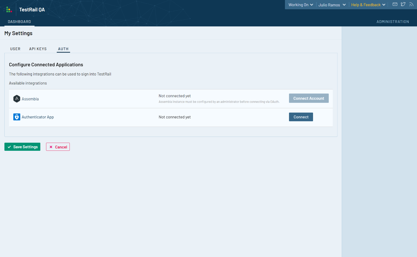 認証アプリにアクセスできなくなり、TestRail から締め出された場合、プロファイルからアプリを切り離すよう TestRail 管理者に依頼してください。
