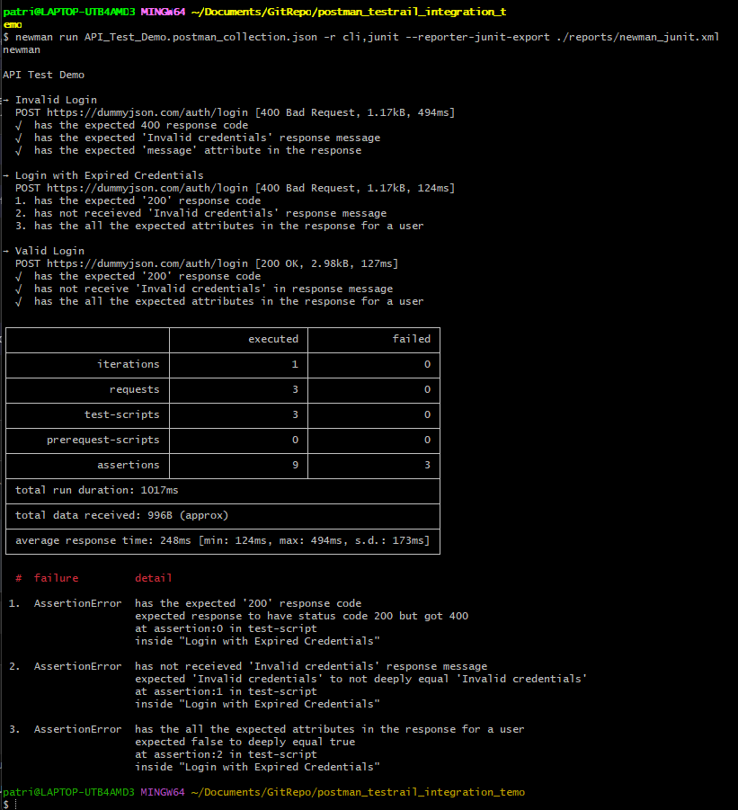 newman run API_Test_Demo.postman_collection.json -r cli,junit --reporter-junit-export ./reports/newman_junit.xml