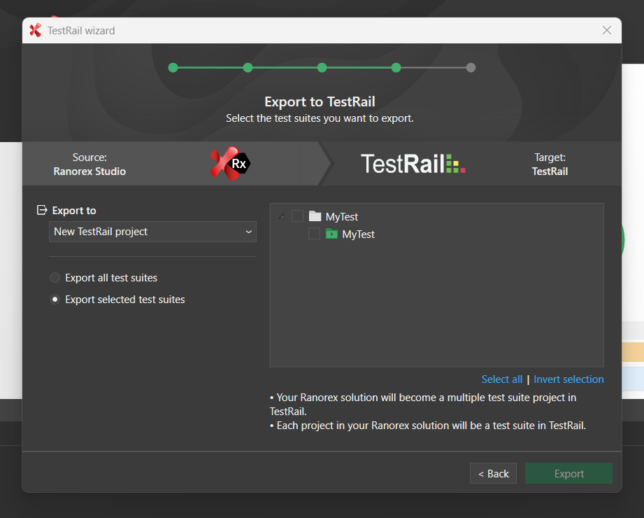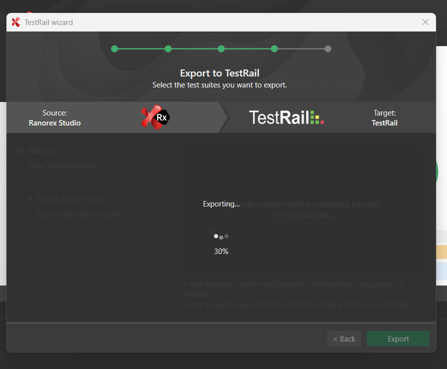 Ranorex から既存のデータをすべて TestRail にエクスポートします。