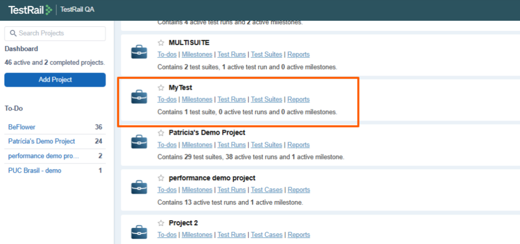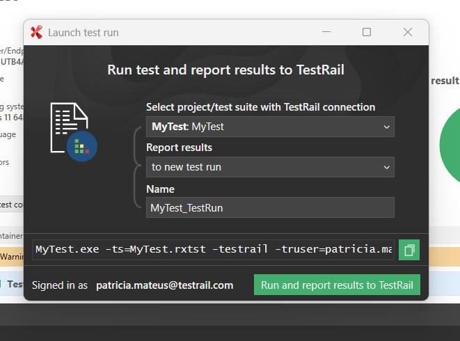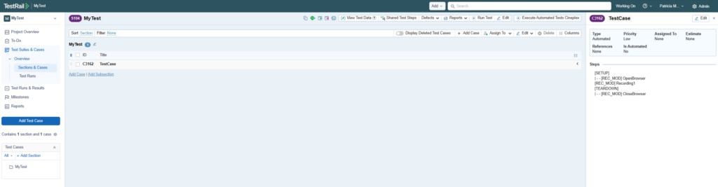 重要な点として、Ranorex のプロジェクト名は、TestRail のプロジェクト名と同じです。