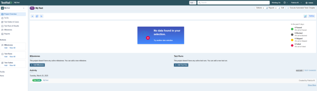 TestRail と同期する: テスト スイートに変更が加えられるたびに同期することで、TestRail プロジェクトを最新の状態に保ちます。
