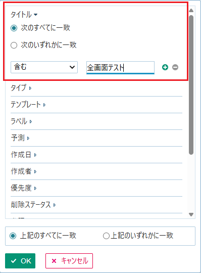 - 次の結果を含める:「次のテスト ランのみ」 ラジオボタンをチェック