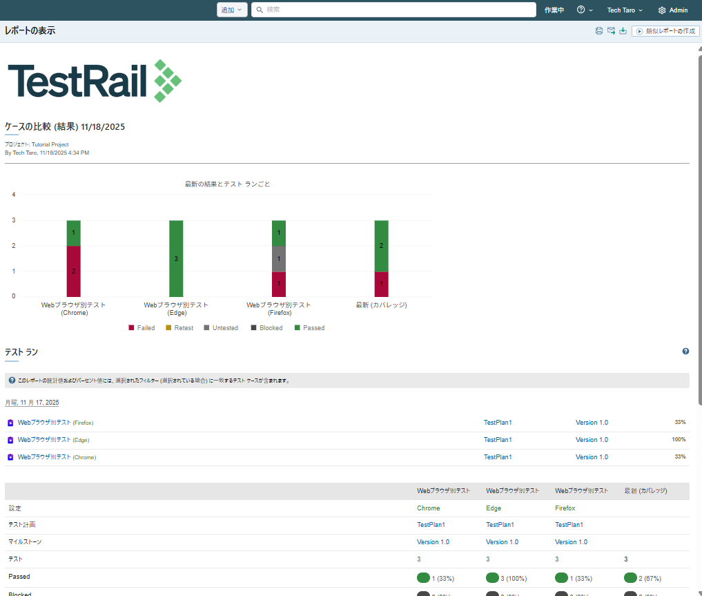 ◆ Practice ◆複数のテストランに含まれるテストケース のテスト結果を比較するレポートを生成します。