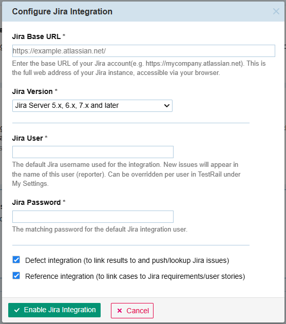 このセクションでは、TestRail と Jira Server または Data Center を統合する手順を詳しく説明します。