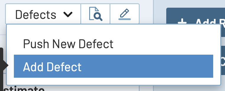 また、プロジェクト、マイルストーン、計画、ラン、テスト ケースのツールバーに [欠陥] ドロップダウン メニューが表示されます。このメニューを使用すると、TestRail のほとんどの場所からリンクをクリックして外部ツールに移動し、新規欠陥を追加できます。