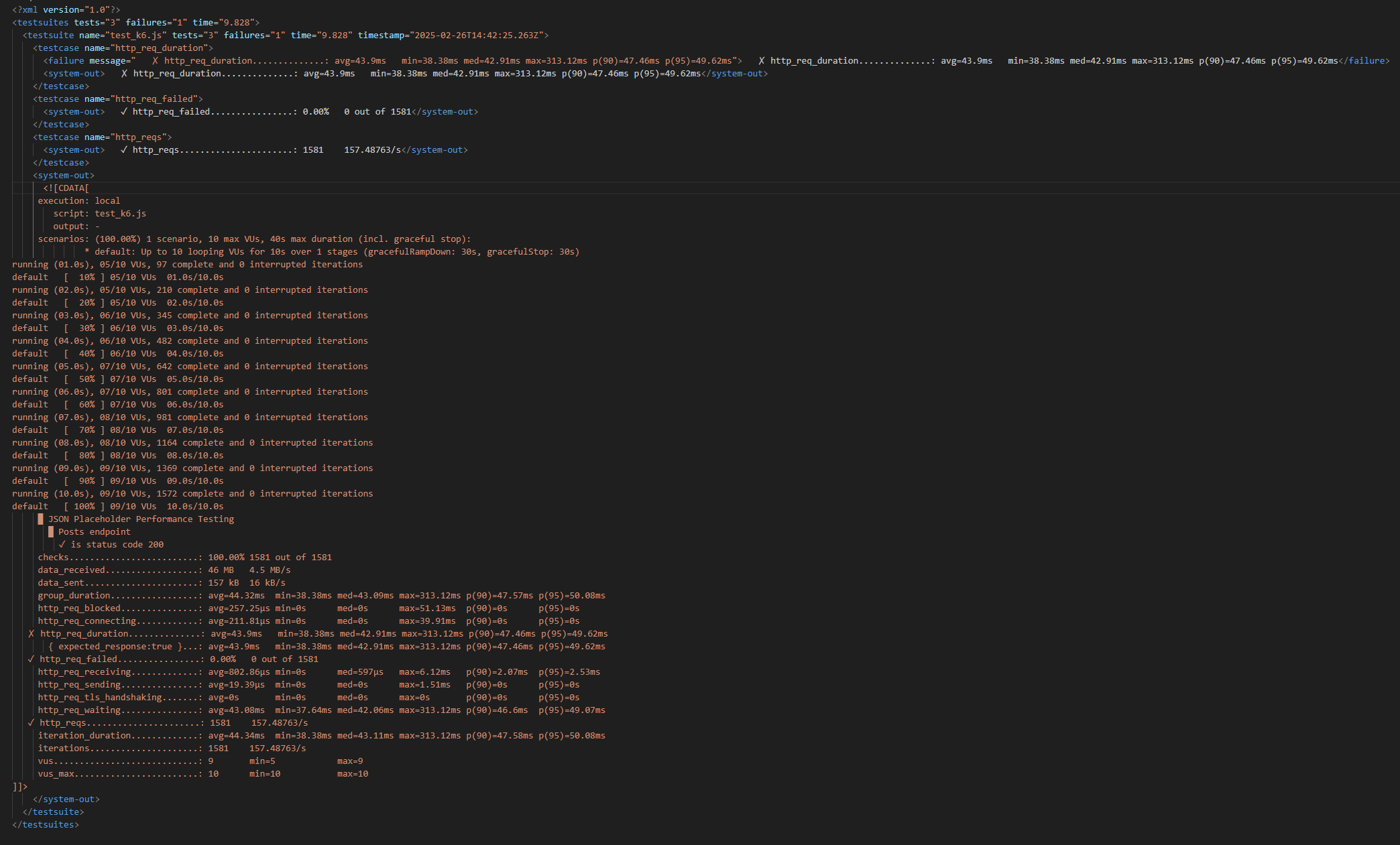 $ k6 run test_k6.js | k6-to-junit ./reports/junit.xml