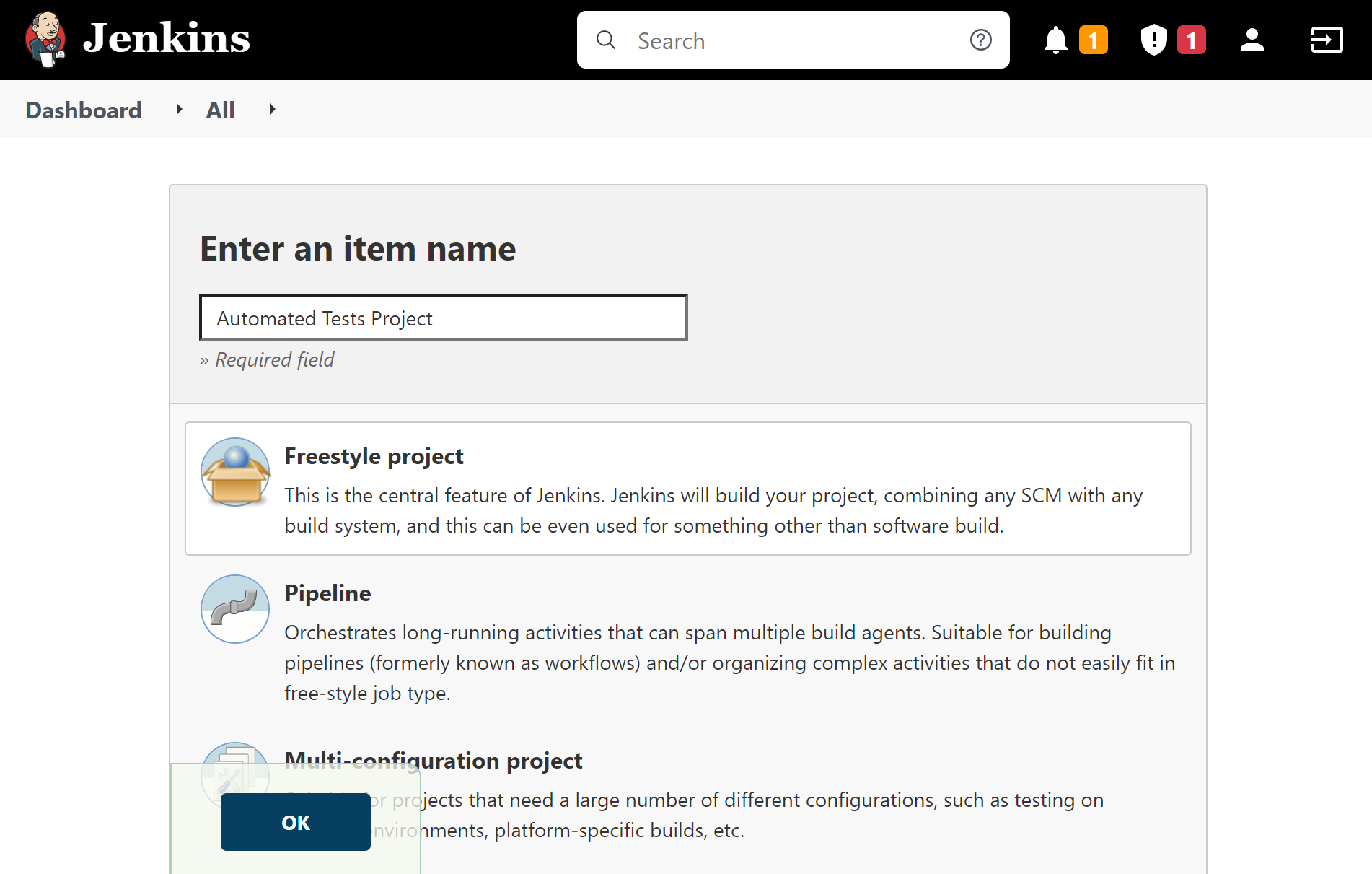 新規 Jenkins ジョブの作成