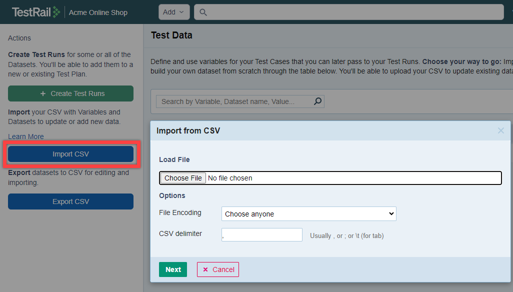 以下のセクションでは、TestRail でのテスト データ、変数、データセットの使用方法を説明します。