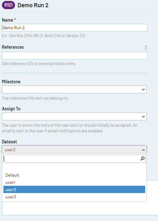 データセットを使用するようテスト ランを設定するには、テスト ランを編集し、ドロップダウン オプションからデータセットを選択します。