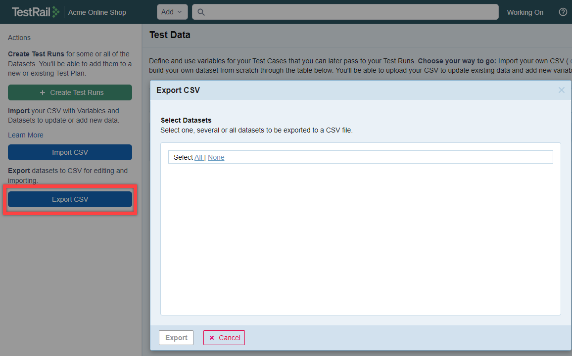 以下のセクションでは、TestRail でのテスト データ、変数、データセットの使用方法を説明します。