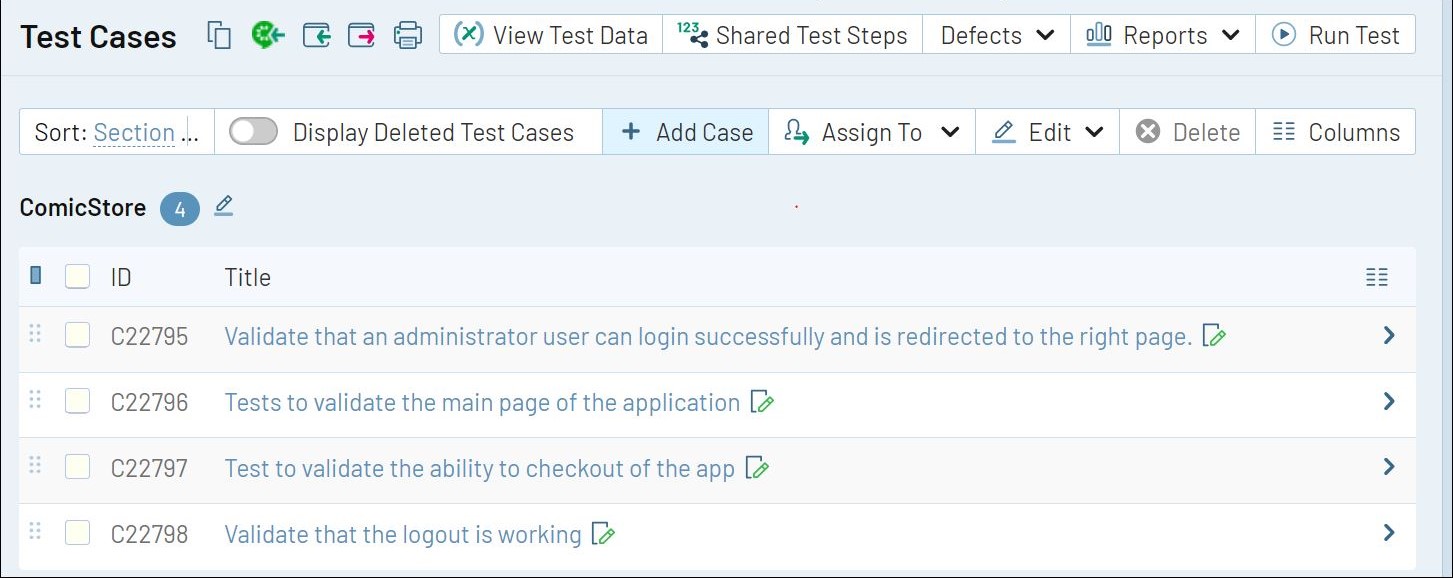 下の図のようにテスト ケースがインポートされたことを確認できるはずです。