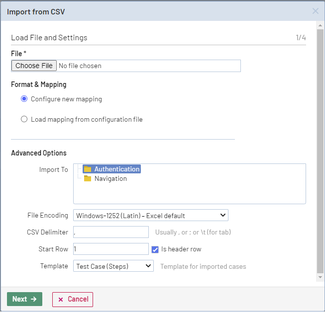 TestRail へのテスト ケース データのインポートは非常に簡単です。テスト ケースをインポートするプロジェクトに移動し、次の手順を行うだけです。この手順ガイドでは、最も複雑なテンプレートである Step-by-Step を使用します。