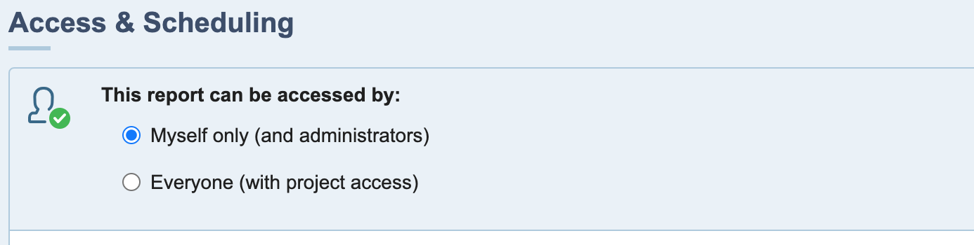 レポート設定ページ下部の [アクセスとスケジュール] セクションでは、公開と共有の設定を選択します。