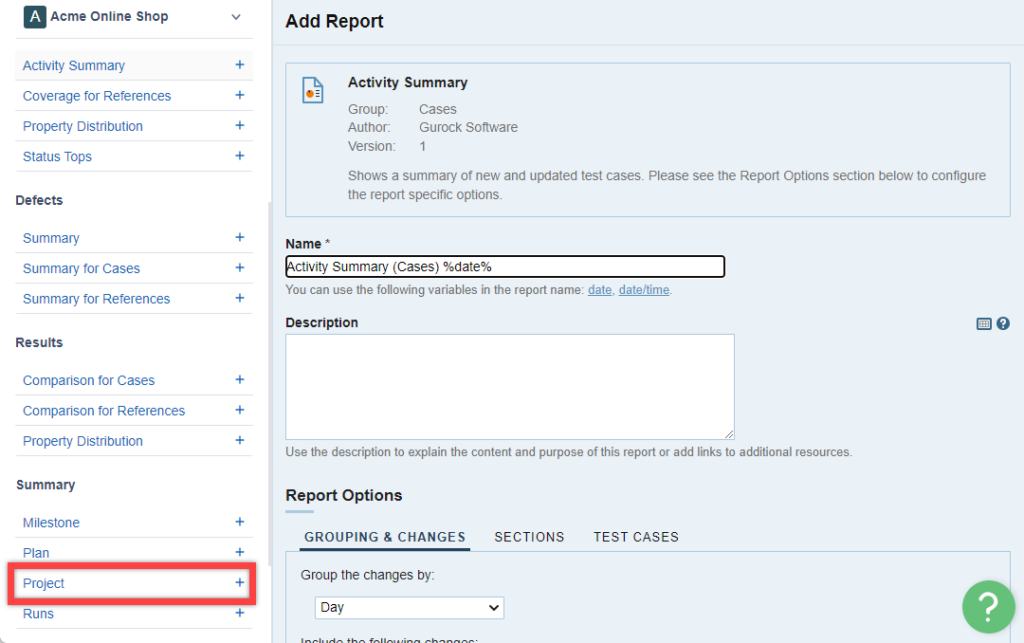 TestRail でプロジェクト (サマリー) レポートを生成するには、いくつかの設定を行う必要があります。