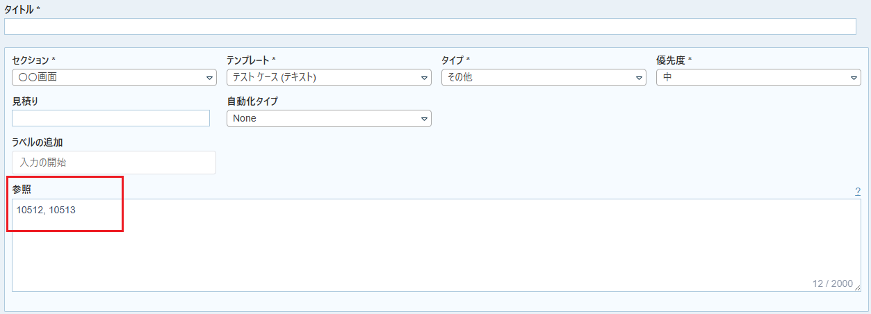 - テストケース追加画面の 参照 フィールドに要件 ID を設定します。(追加リンクから要件管理ツールを開いて新規に要件を登録することもできます。)