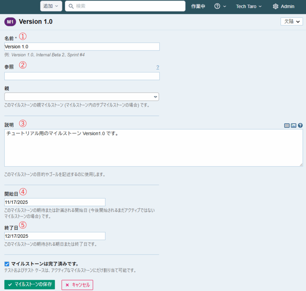 本章では TestRail のマイルストーン作成について説明します。