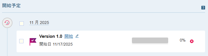 「マイルストーン」タブで開始予定の欄から該当のマイルストーンの横に表示される「開始」リンクをクリックします。
