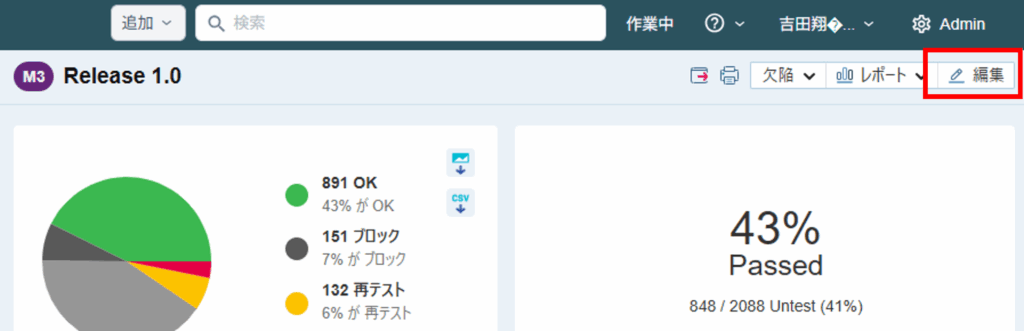 - 「完了」させるマイルストーンを開いた右上の「編集」リンクを押下して、「マイルストーンの編集」画面を表示します。