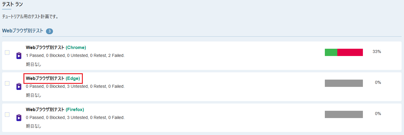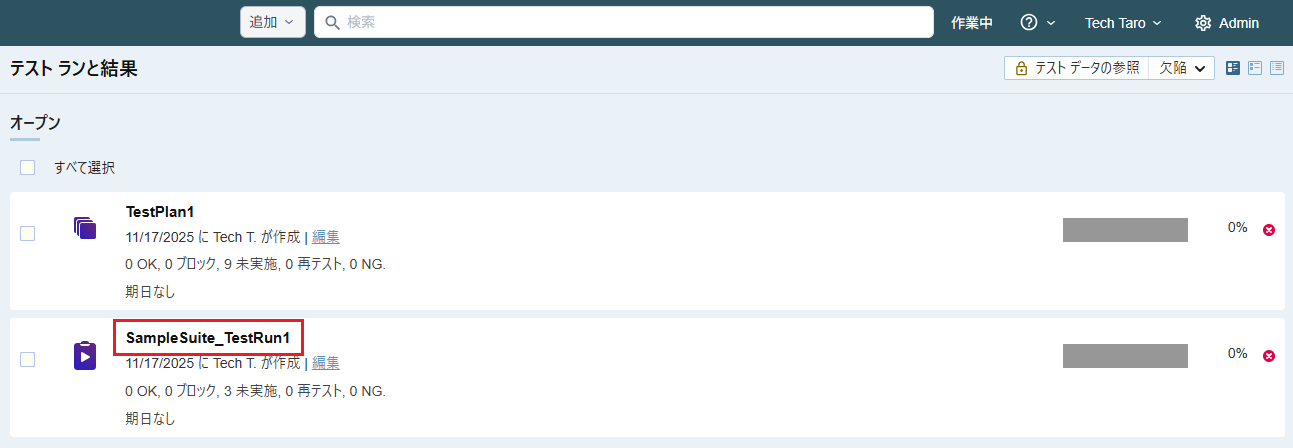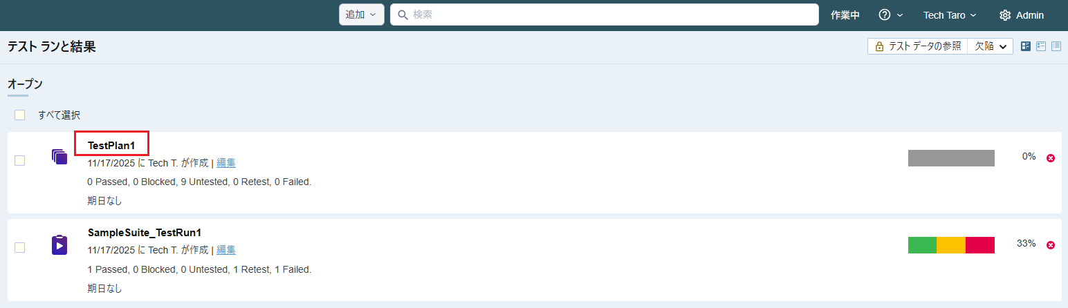 - テストラン内の全てのテスト結果が入力されたことを確認します。