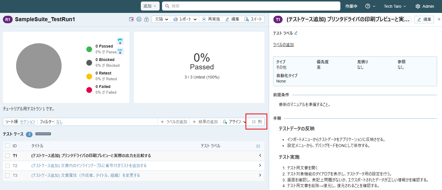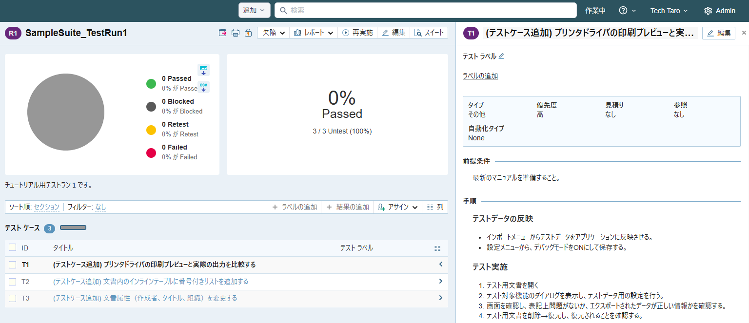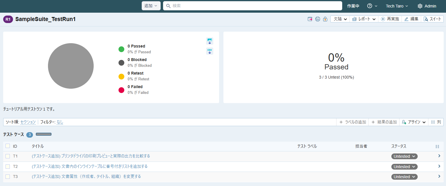 本章では TestRail のテスト実施、結果登録について説明します。
