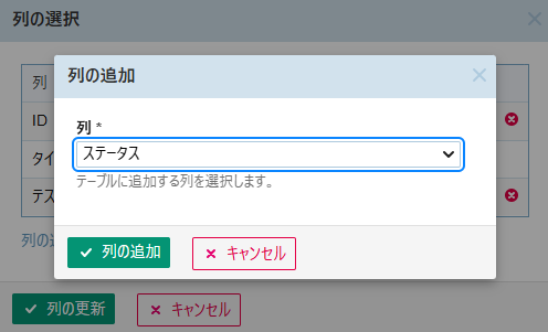 - 「ステータスの追加」からステータスを選択して「列の追加」ボタンを押下します。