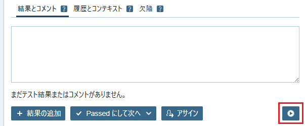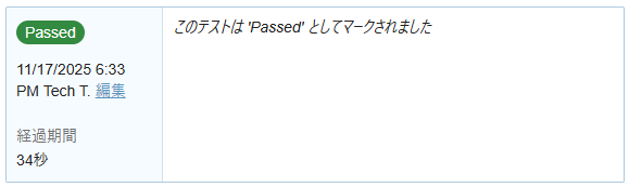 テストを実行し、作成したケースにテスト結果はテストランに登録します。