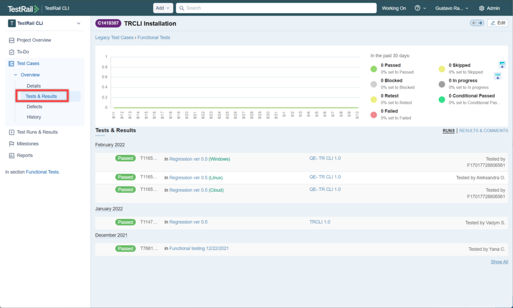 すべての割り当ては、 テスト ランによって管理されます。テスト ランは TestRail の主要な機能の 1 つであり、さまざまな環境、リリース、またはスプリントにわたるテスト ケースの割り当てと実行の追跡を簡素化します。