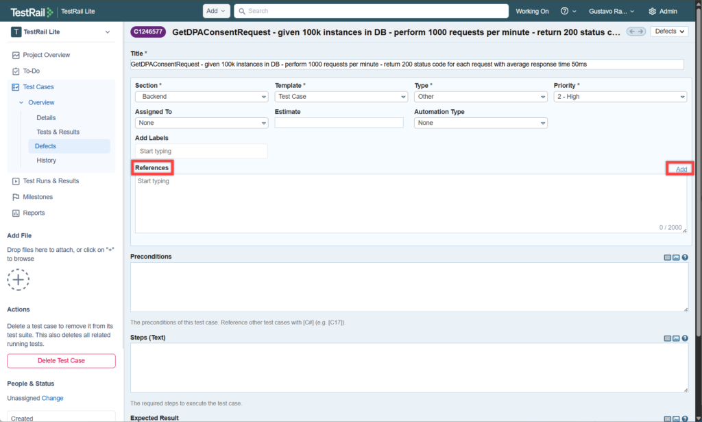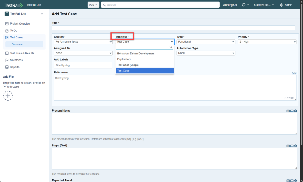 TestRail では、 テストケース テンプレートを作成することができ、すべてのテストケースが一貫した構造、用語、形式に従うことを保証します。テスト文書を標準化することで、テンプレートは不整合のリスクを減らし、テスターが明確で統一されたテストケースを作成しやすくします。
