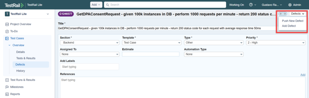 テスト ケースが失敗した場合、TestRail から直接、簡単に課題追跡ツール (Jira など) のバグ レポートを作成できます。これにより、テスト実施から欠陥の解決までのシームレスな流れが確保され、チーム間で問題が何度も受け渡されることが減ります。