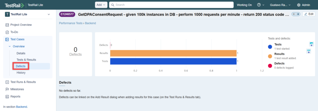 また、テスト ケースの詳細の [欠陥] セクションで、あるテスト ケースに関連付けられた欠陥の数を確認することもできます。