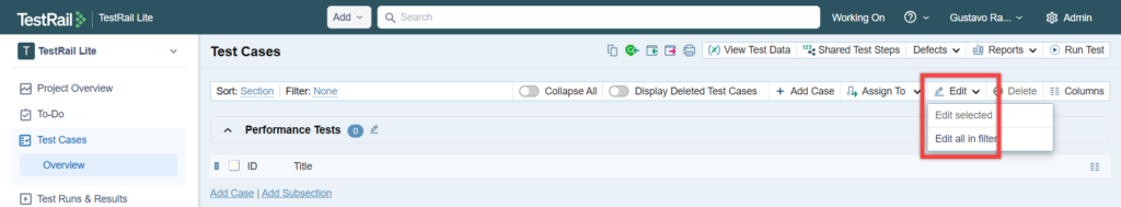 TestRail の一括編集機能は、機能またはテスト要件に変更があった場合、複数のテストケースをすばやく更新することを可能にします。