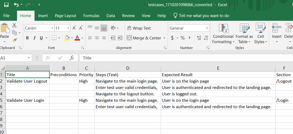 - (オプション) CSV ファイルのマッピングと処理を容易にするため、 TestRail のフィールド命名規則に合うようにヘッダー値を更新します。
